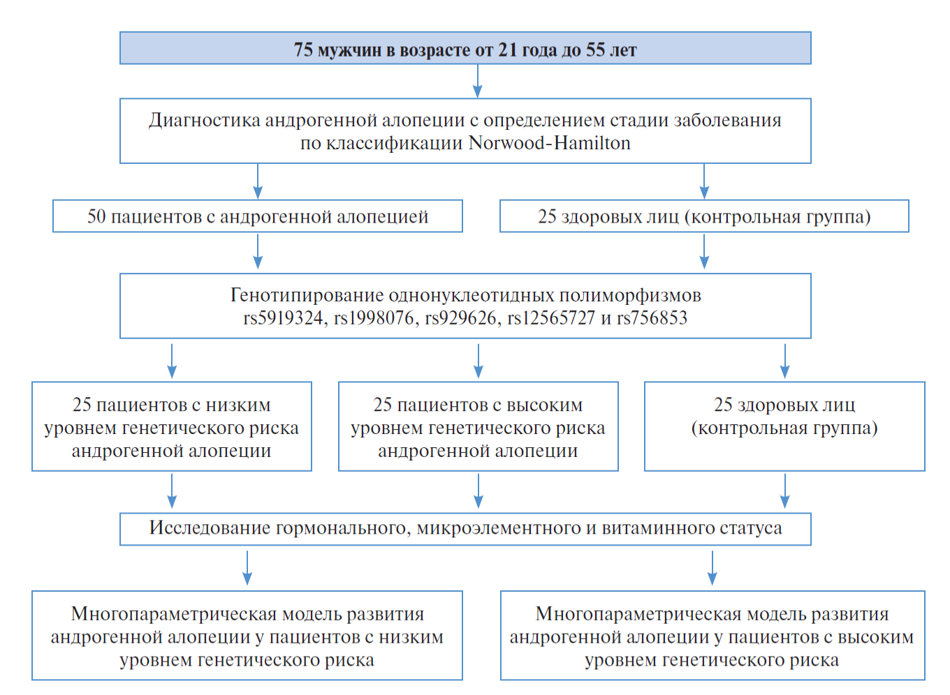 Рис. 1. Дизайн исследования роли генетических и негенетических факторов в возникновении и развитии андрогенной алопеции
