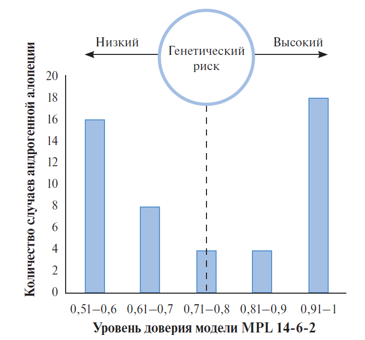 Рис. 3. Принцип деления группы пациентов с андрогенной алопецией на подгруппы низкого и высокого генетического риска развития данного заболевания