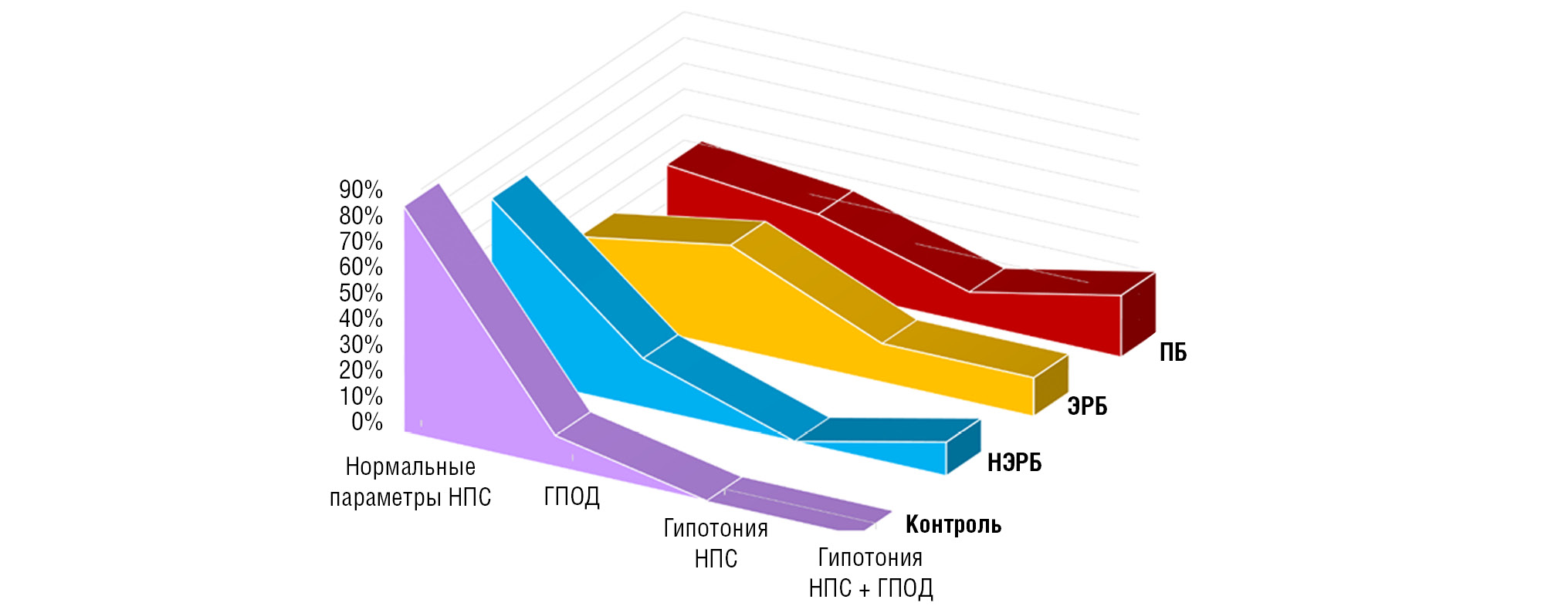 Примечание. НПС ― нижний пищеводный сфинктер, ГПОД ― грыжа пищеводного отверстия диафрагмы, НЭРБ ― неэрозивная рефлюксная болезнь, ЭРБ ― эрозивная рефлюксная болезнь, ПБ ― пищевод Барретта.