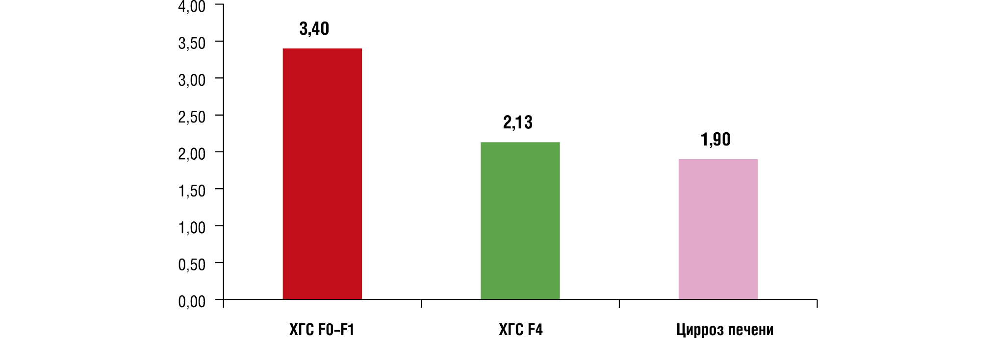 Успехи в лечении гепатита С препаратами прямого противовирусного действия позволили Всемирной организации здравоохранения сформулировать концепцию элиминации этого заболевания к 2030 г. [1]. По экспертным оценкам, обеспечение нуждающихся в лечении пациентов препаратами прямого противовирусного действия в Европе, США и некоторых странах Азии позволило снизить общее количество больных со 150 до 71 млн человек [2]. Однако необходимо учитывать, что мутации вирусного генома приводят к формированию резистентных к лечению препаратами прямого противовирусного действия штаммов [3]. Кроме этого, серьезную проблему для здравоохранения всех стран представляет рост числа больных с неблагоприятными исходами хронического гепатита С (ХГС), такими как цирроз печени и гепатоцеллюлярная карцинома (ГЦК) [4]. По мере прогрессирования фиброза печени риск развития гепатоцеллюлярной карциномы увеличивается с 2,1 до 7,8 % [5]. В определенном смысле неожиданностью было установление факта сохранения риска развития гепатоцеллюлярной карциномы у больных хроническим гепатитом С даже после достижения стойкого вирусологического ответа на противовирусную терапию [6].