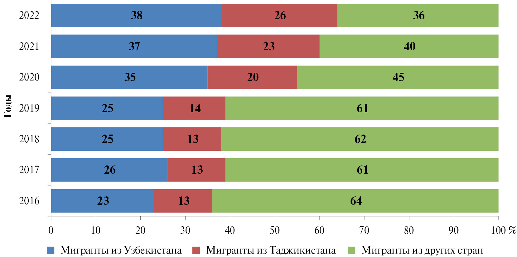 Рис. 4. Структура иностранных граждан, прибывших в Российскую Федерацию, 2016–2022 гг., %