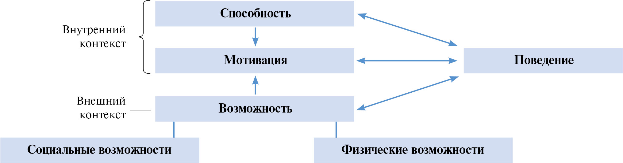 An adapted structure of the “ability-motivation-opportunity-behavior” (COM-B) model [5] was used as a tool for analysis, with the help of which it is possible to identify behavioral barriers and ways to overcome them (see Fig. 1):