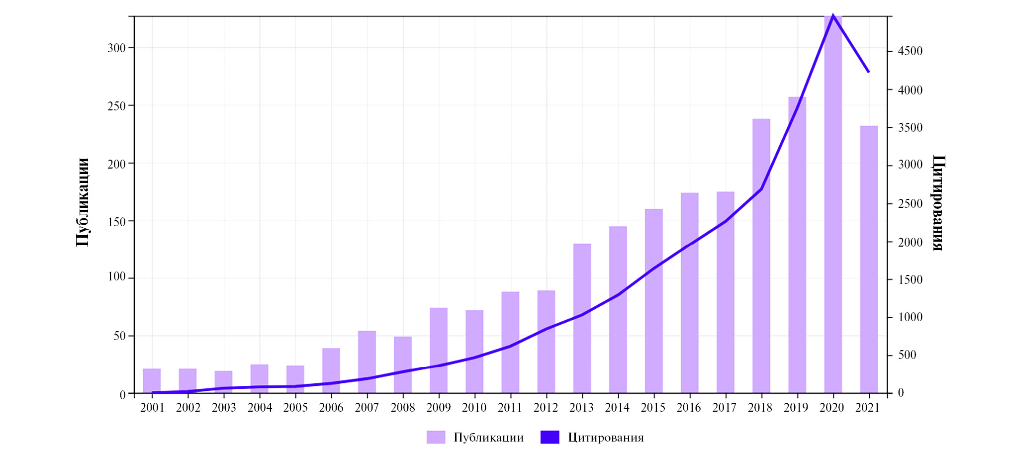 7. Fig 6. Dynamics of the number and citation of publications in the field of "Digital twins in medicine and health care", 2001–2021.