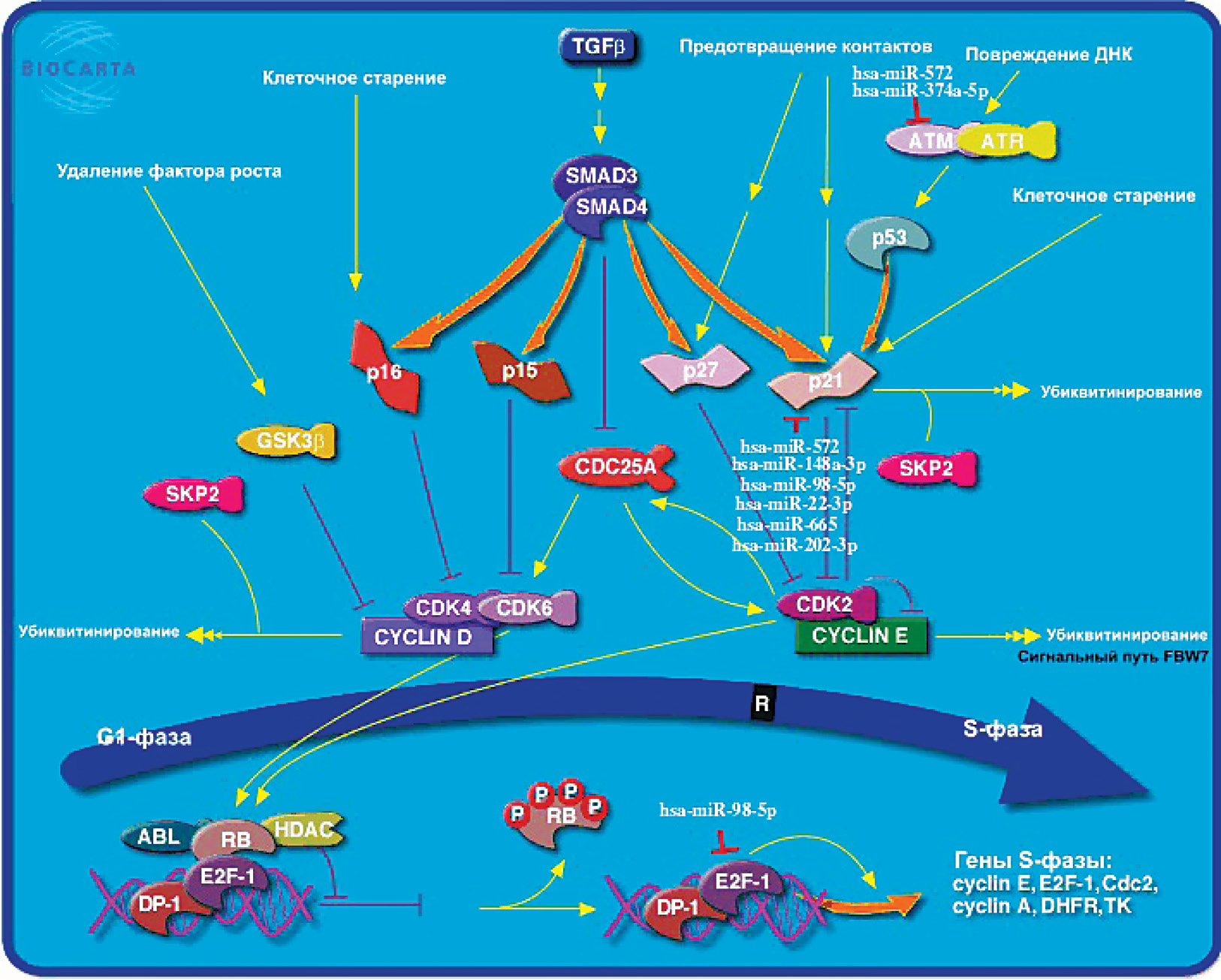 Рис. 4. Участие ДЭ-микро-РНК в регуляции G1/S-перехода